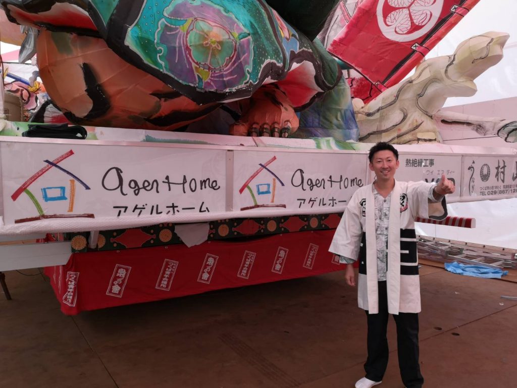 センターステージ、ねぶたにアゲルホームのロゴがっ🏡