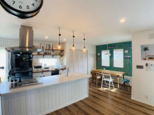 羽目板を白と青に塗装してオシャレに仕上げています🌊