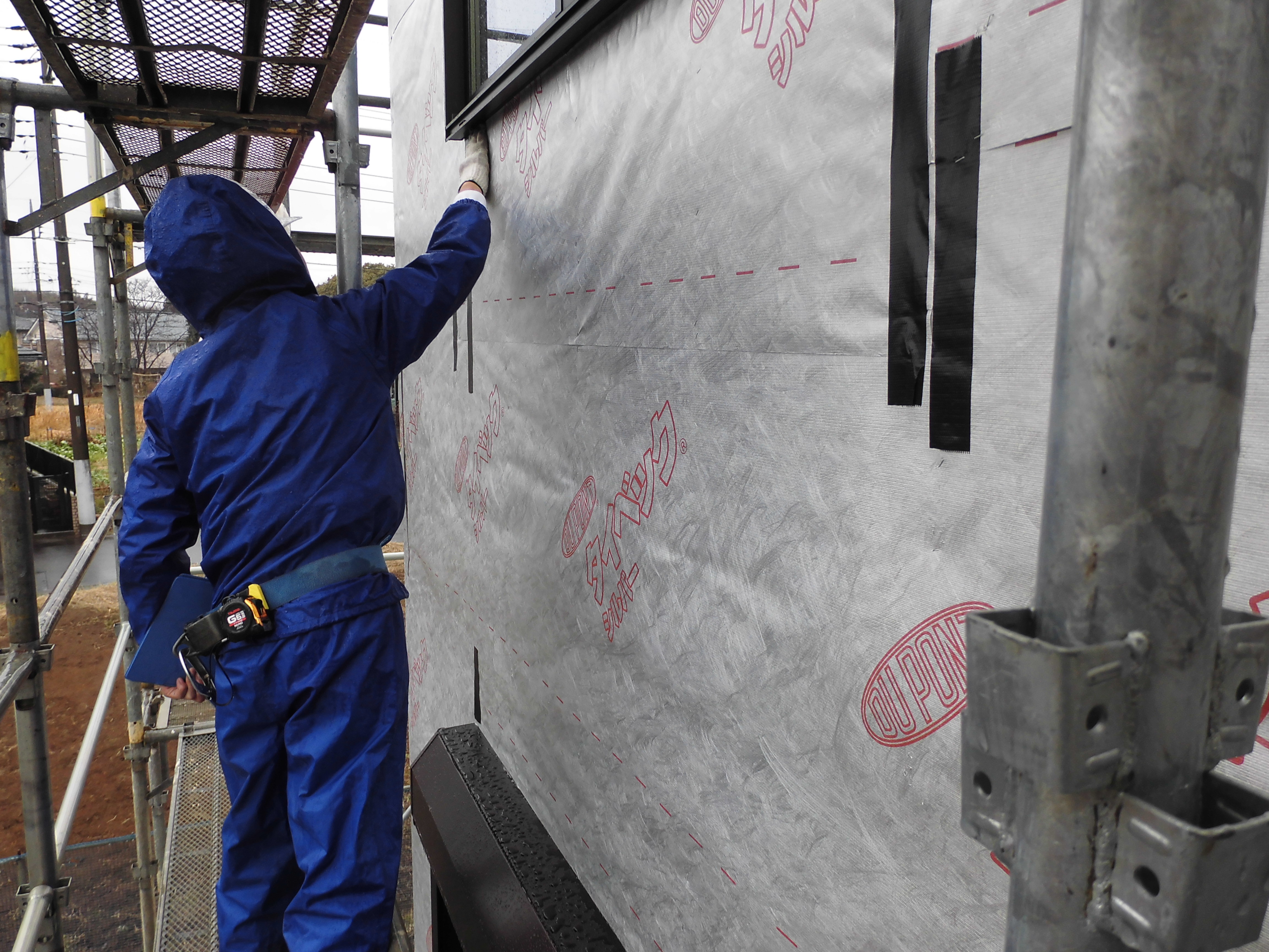 外壁を施工する前の防水対策を確認する重要な検査です。
