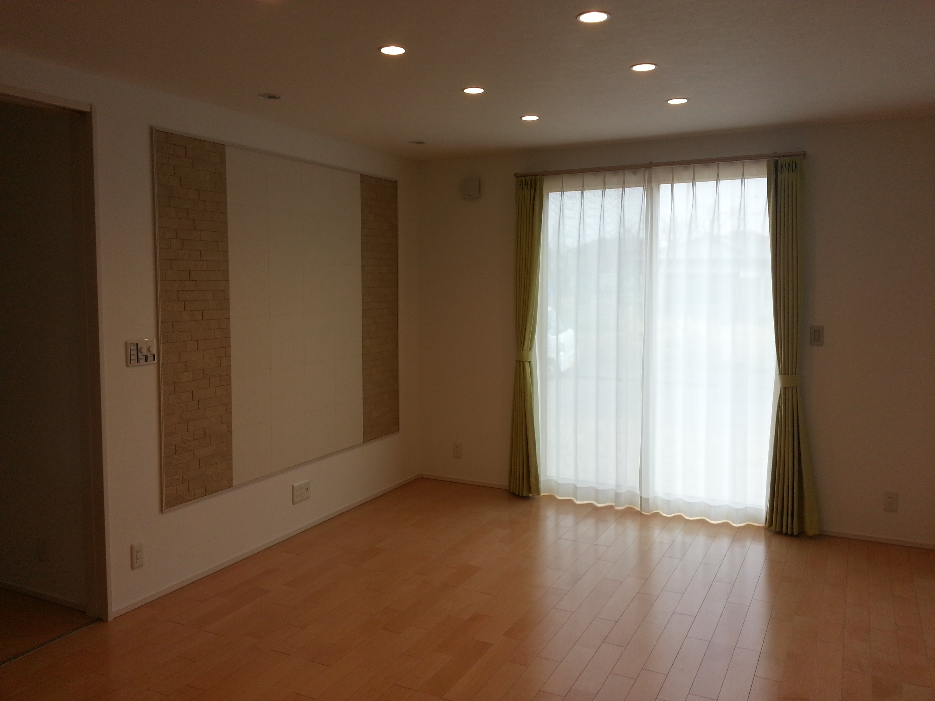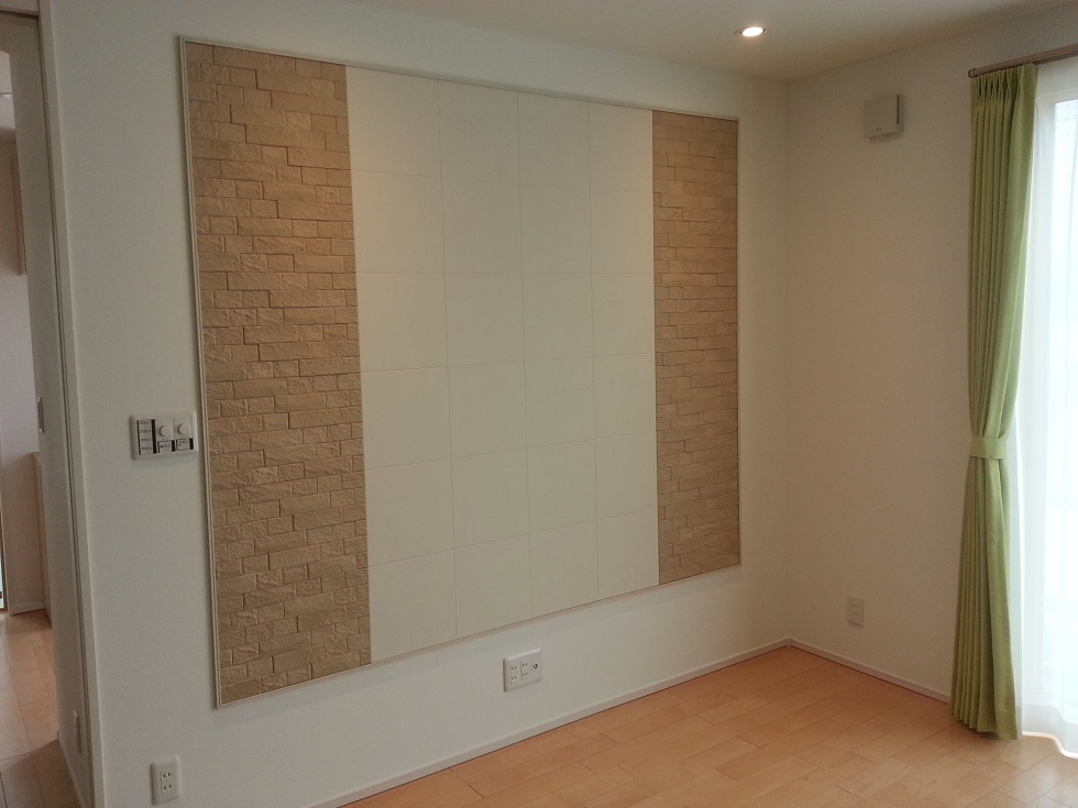 TV設置予定の壁にはエコカラットが貼ってあります。