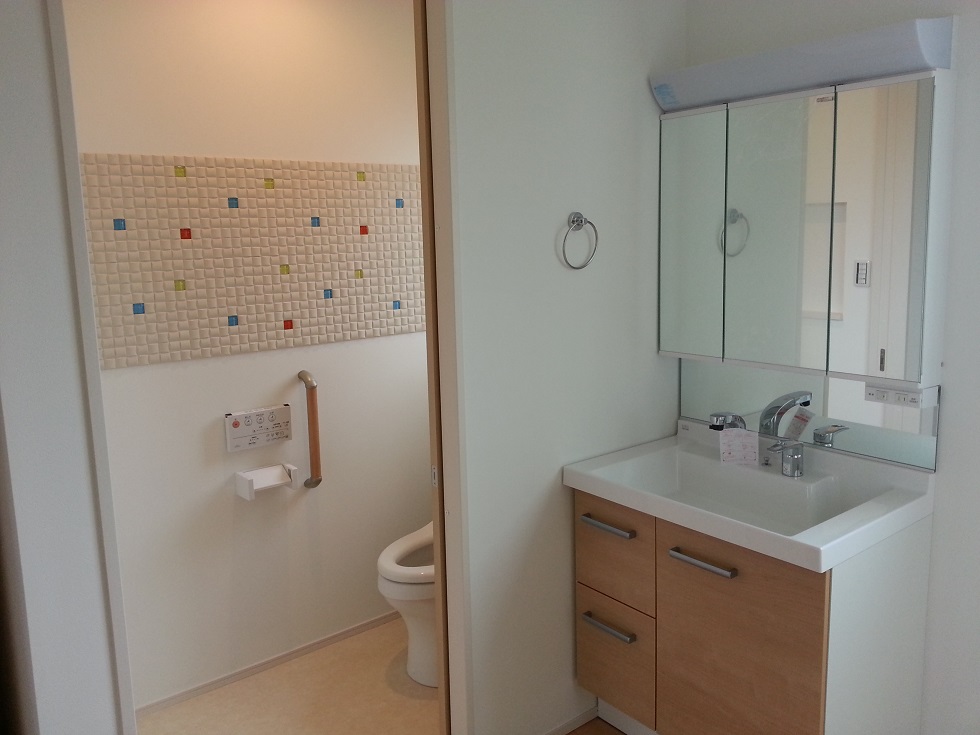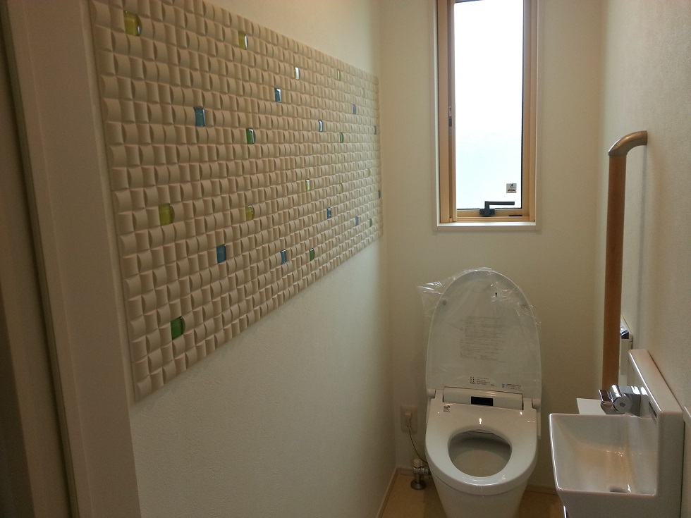 1・2階トイレには、調湿効果抜群のエコカラットがおしゃれですね。