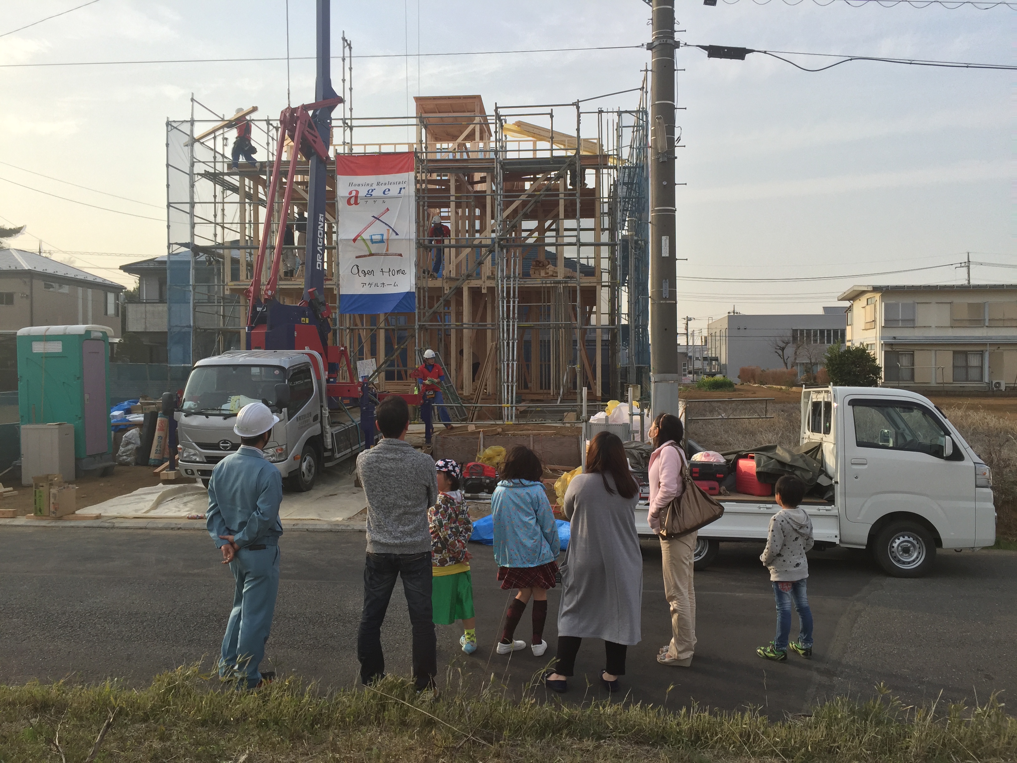 建ちあがっていく我が家を、ご家族皆さんで心配そうに見ていたのが印象的でした(^_^)