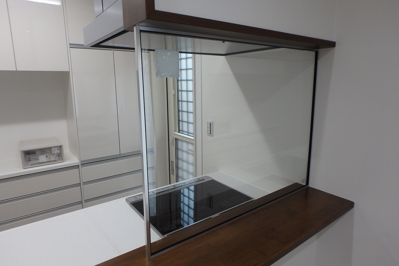 こちらのガラス製オイルガードは建具屋さんの造作です。