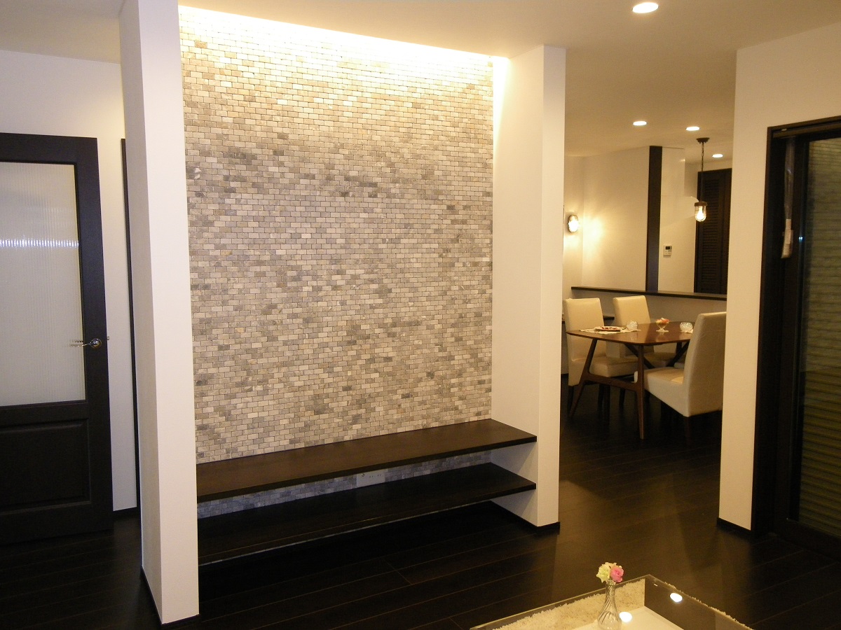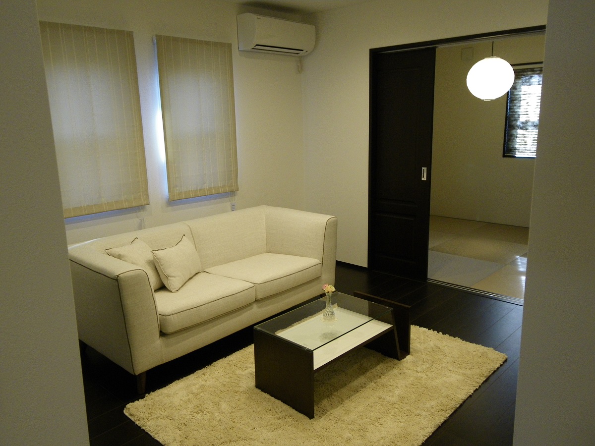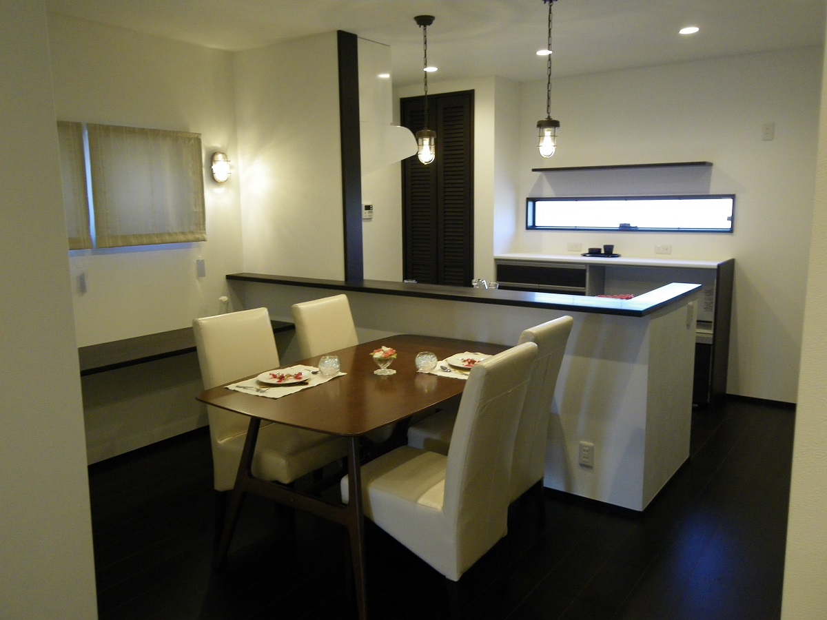 ラップサイディングの外壁と落ち着いた大人の雰囲気の室内が