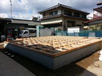土台が敷き終わり静かに上棟を待つ現場。