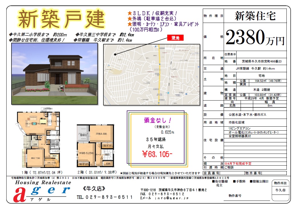 間取り価格などの詳細はこちら→https://www.ager.jp/images/data/20170415/kodate_ushikushi_taguu2.jpg
