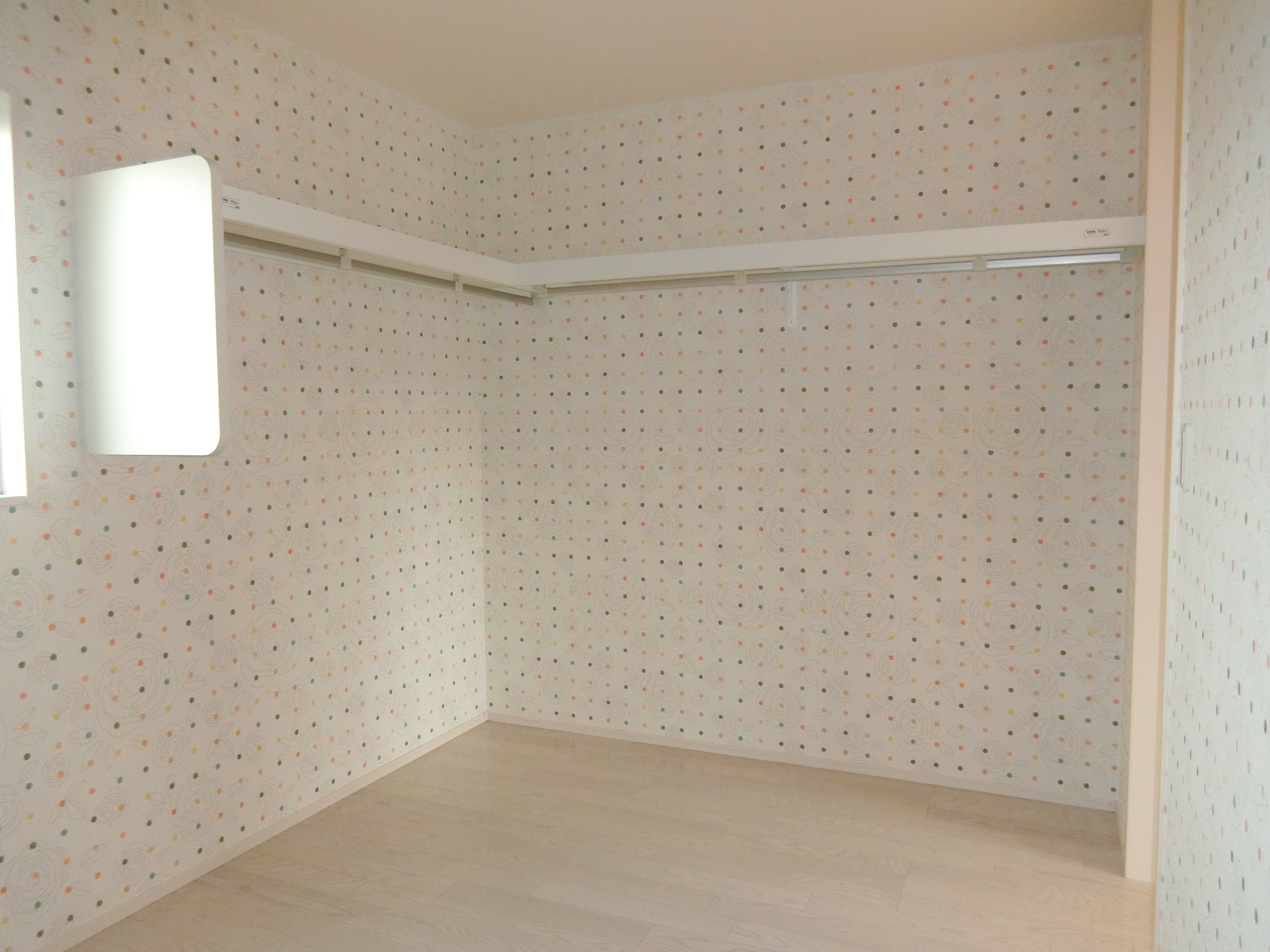 ウォークインクローゼットをかわいく水玉で