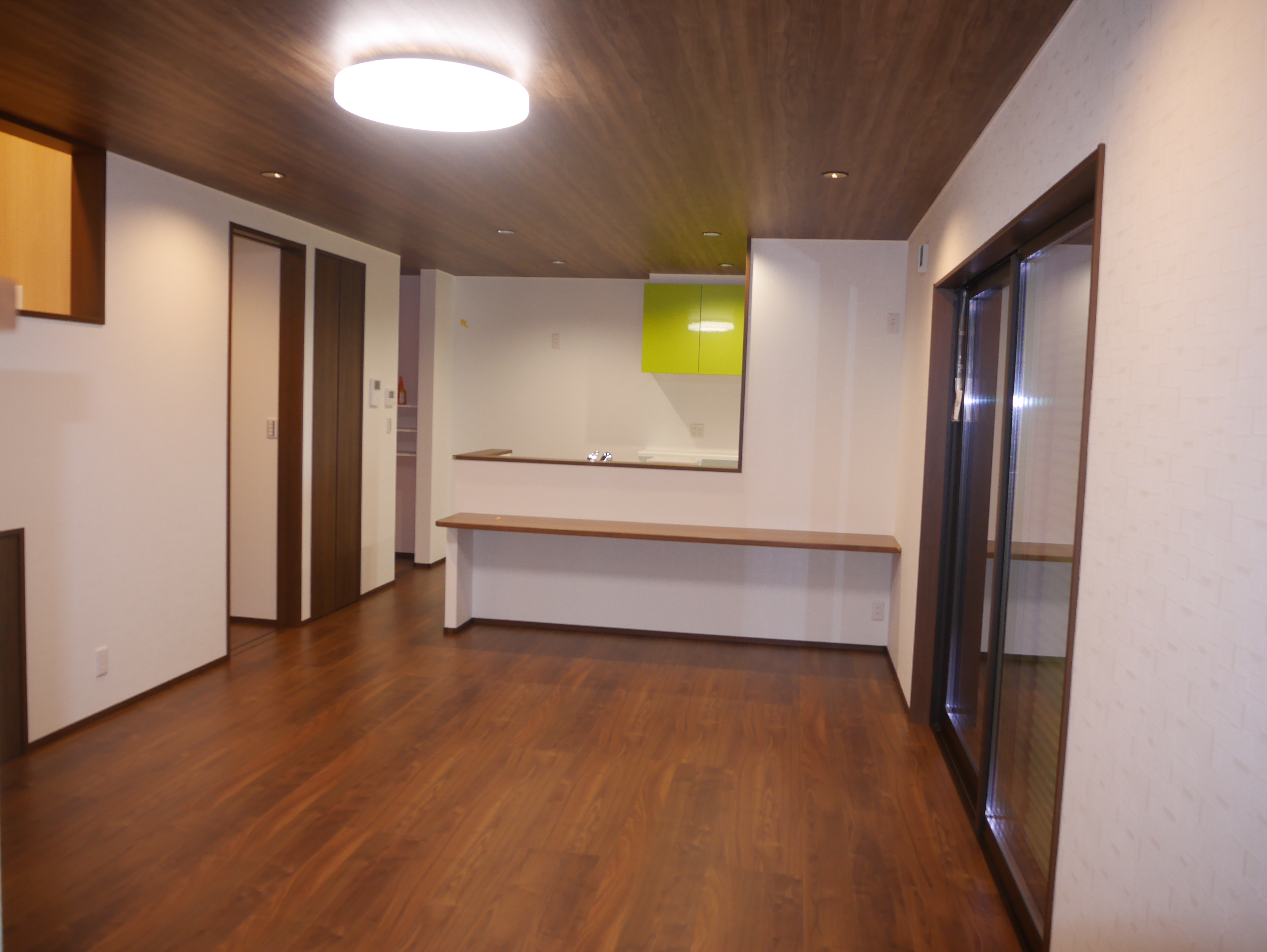 天井に木目調で統一感