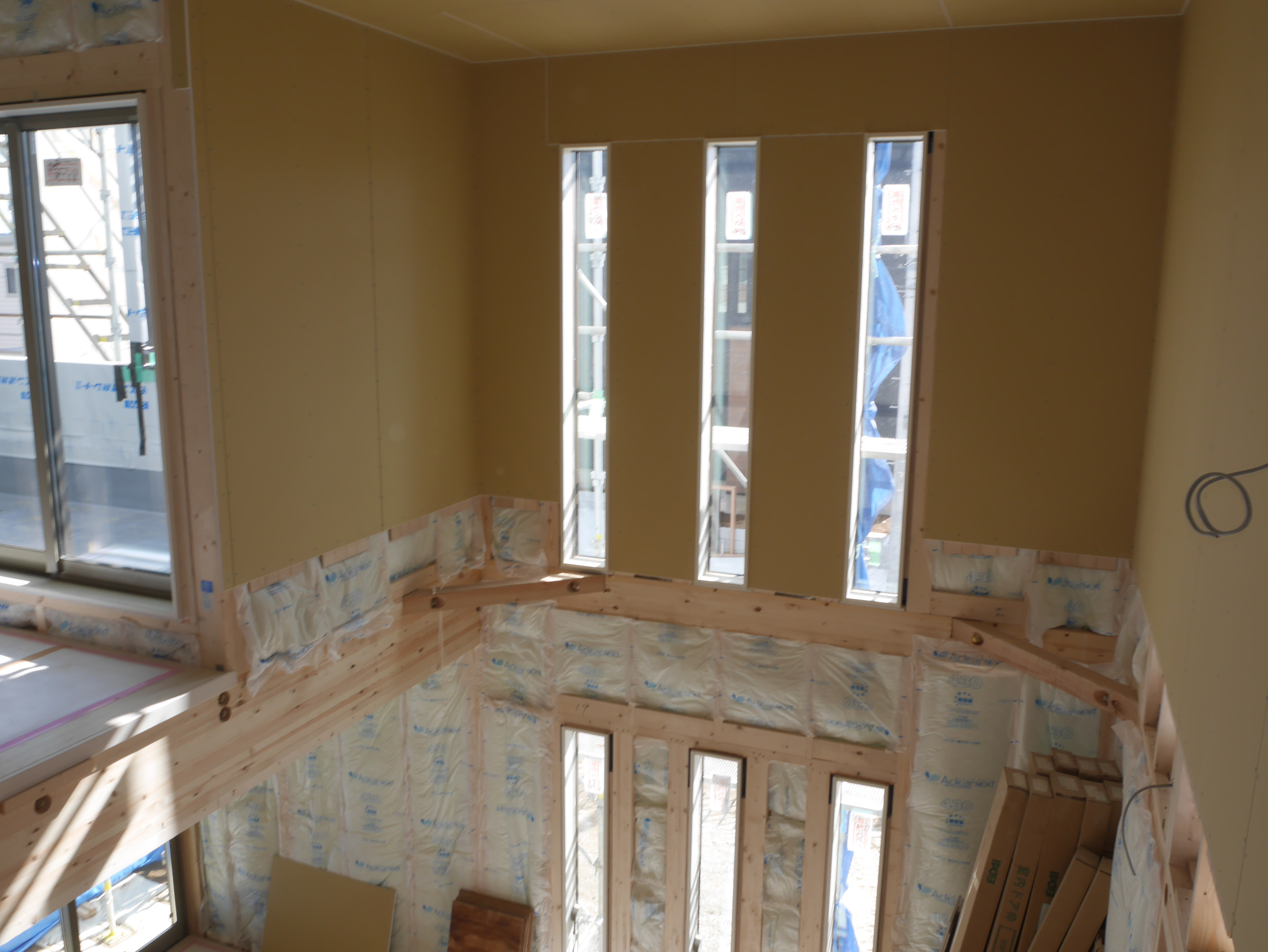 これから、断熱材、天井ボード張っていくところです。