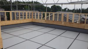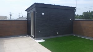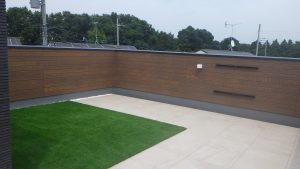 住宅の屋上部を人工芝やタイルを施工しています