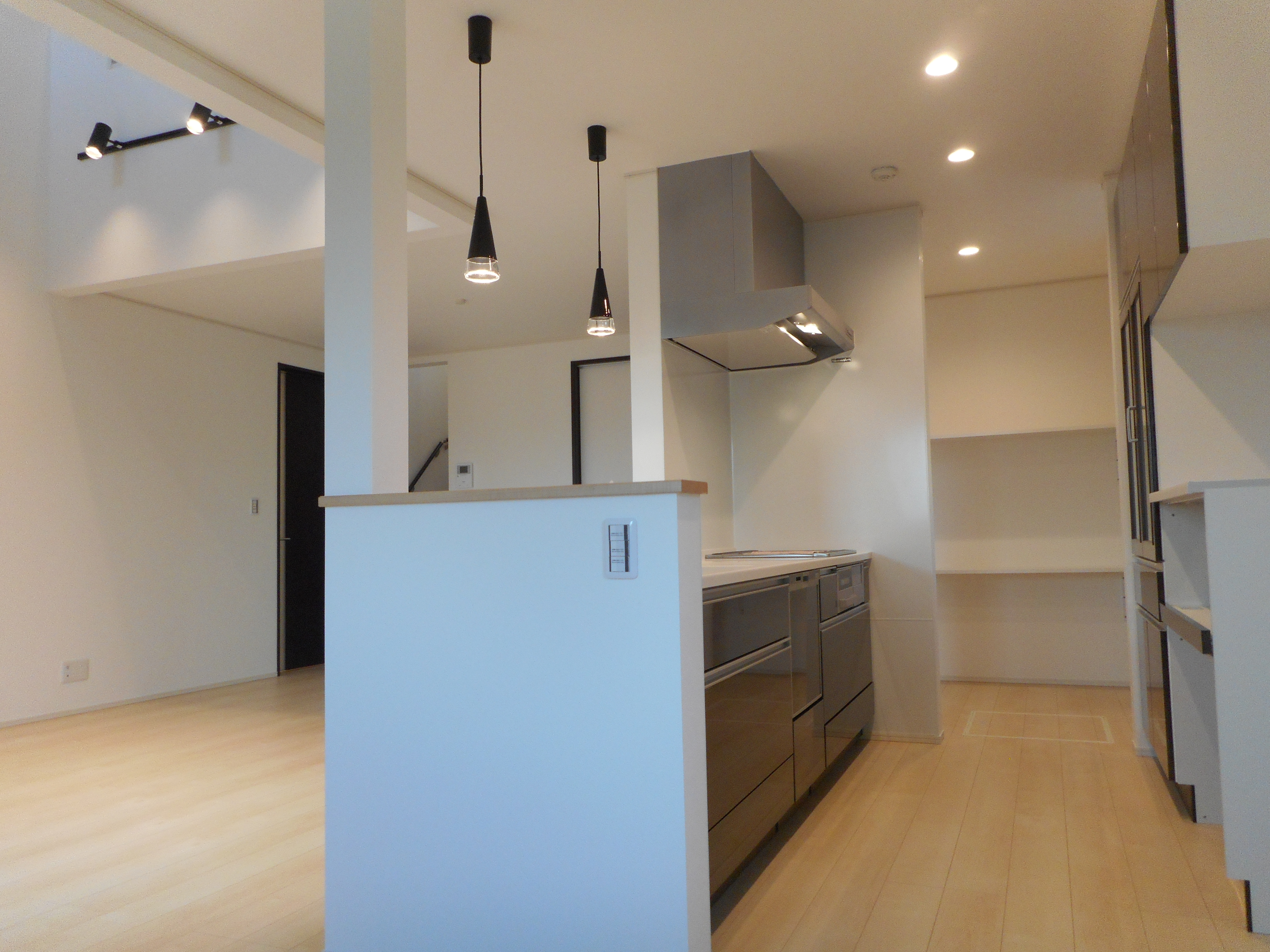 キッチンのペンダントライトもとても良い感じ!
