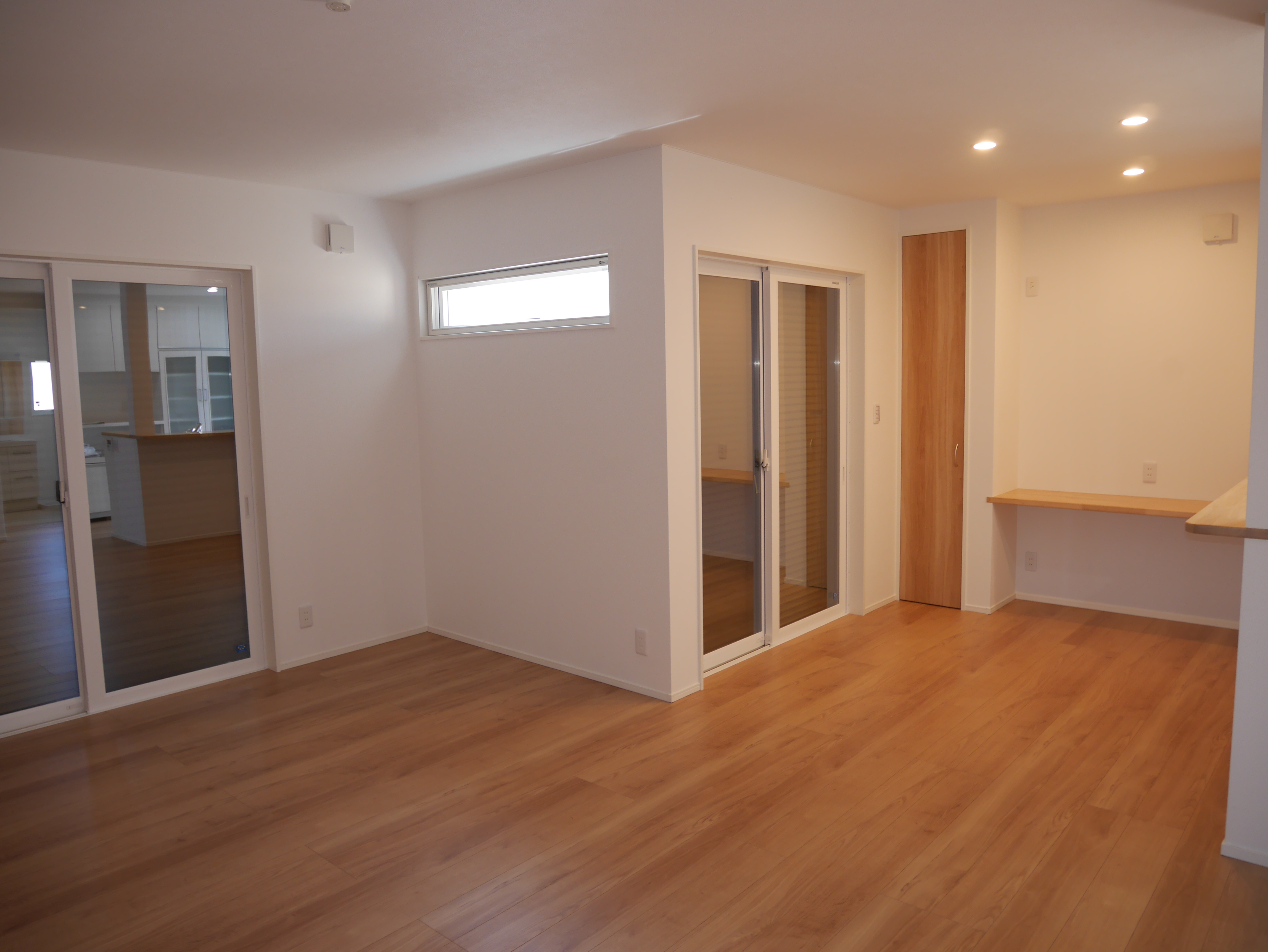 リビングはダイニング側にカウンターと収納があり、