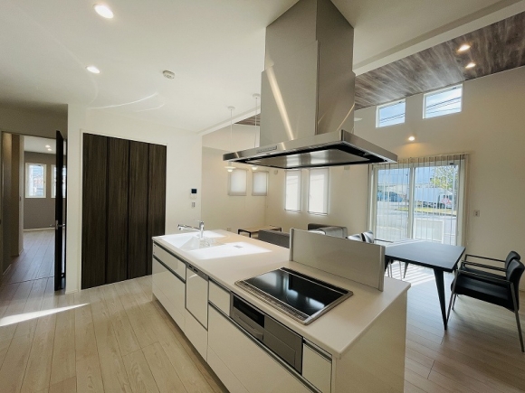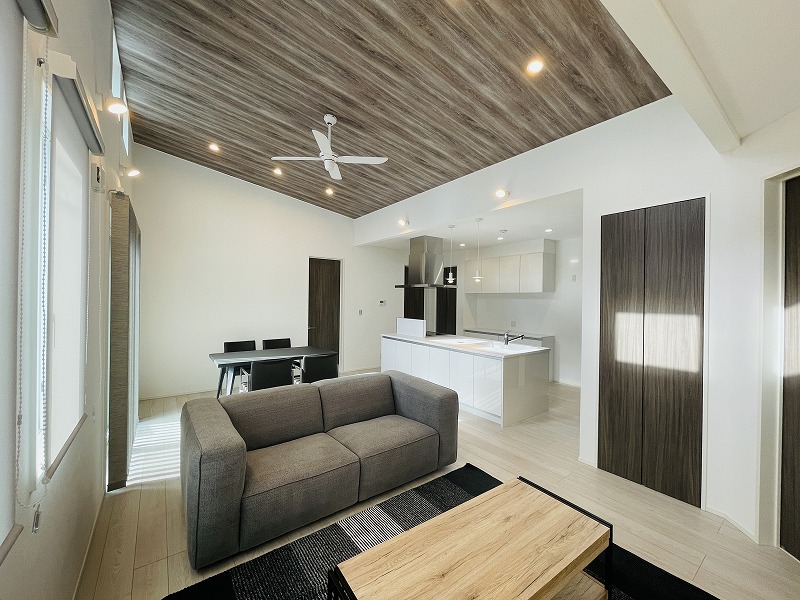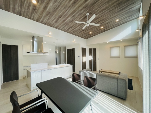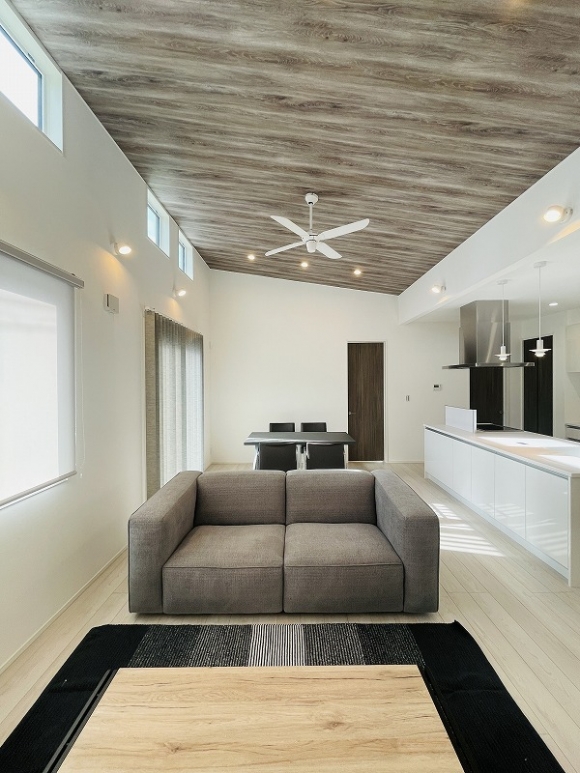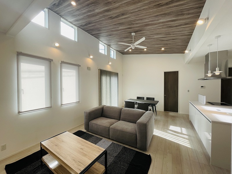 勾配天井が明るく開放感のある空間を演出してくれます。白を基調としたシンプルなデザインの外観がとってもオシャレです。