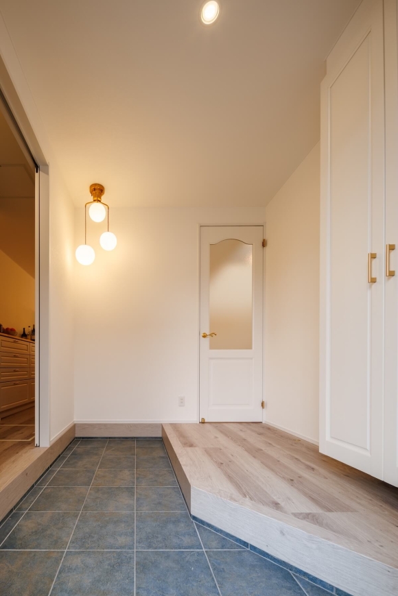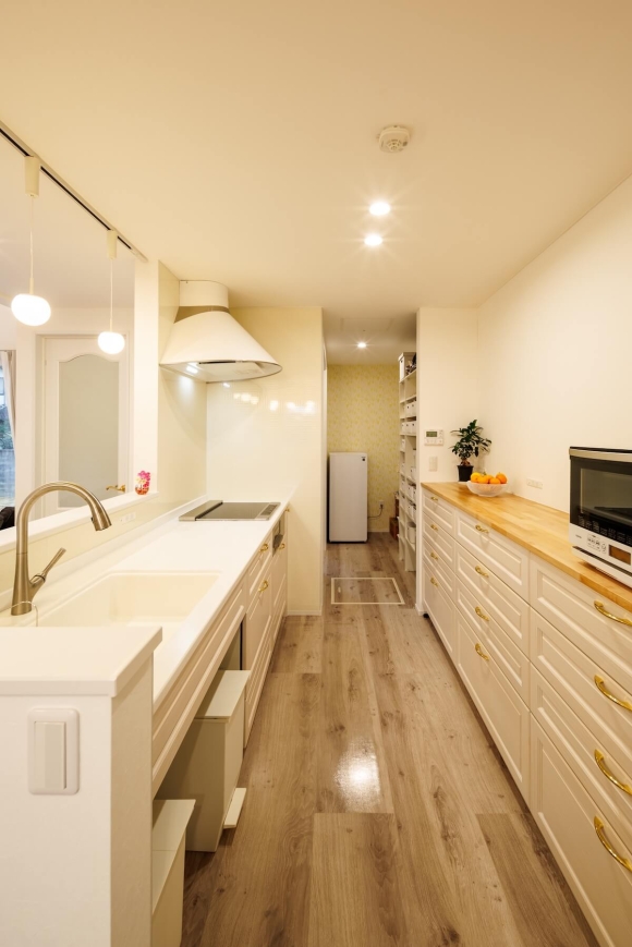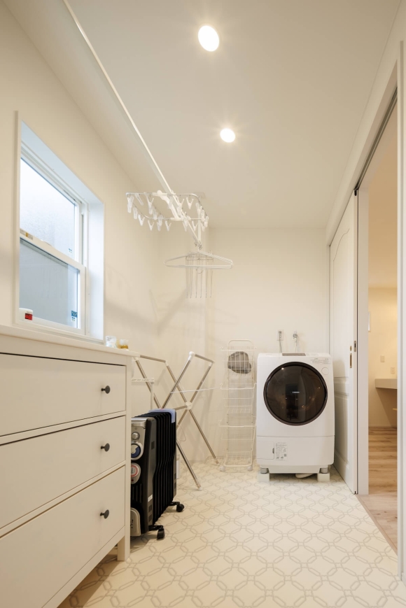 玄関からパントリーを通ってキッチンへつながる動線や、独立した脱衣室、洗面室など、毎日使うスペースを広く確保