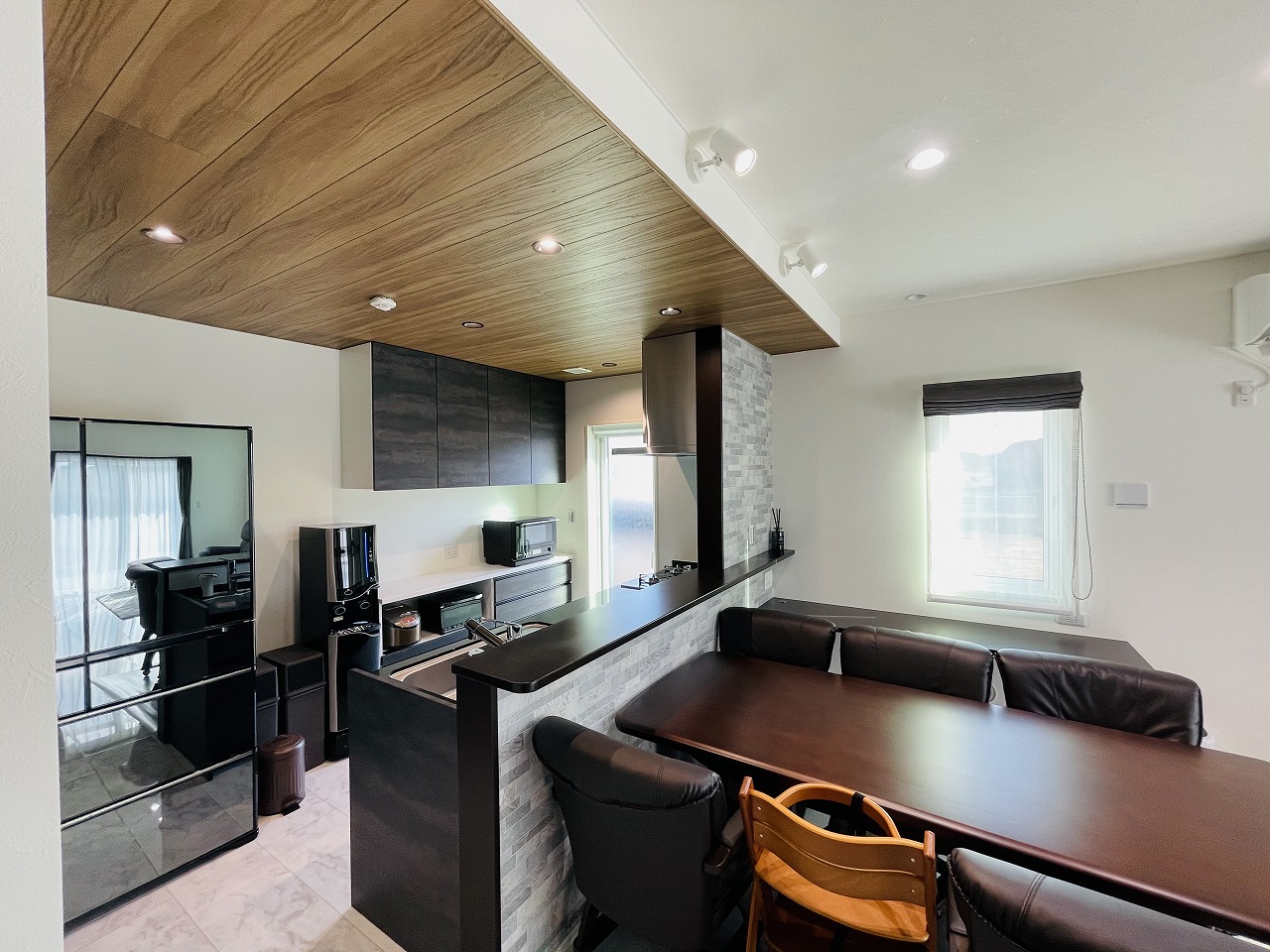 空間のアクセントになる下がり天井、標準仕様の中で工夫を凝らしたおしゃれなキッチン