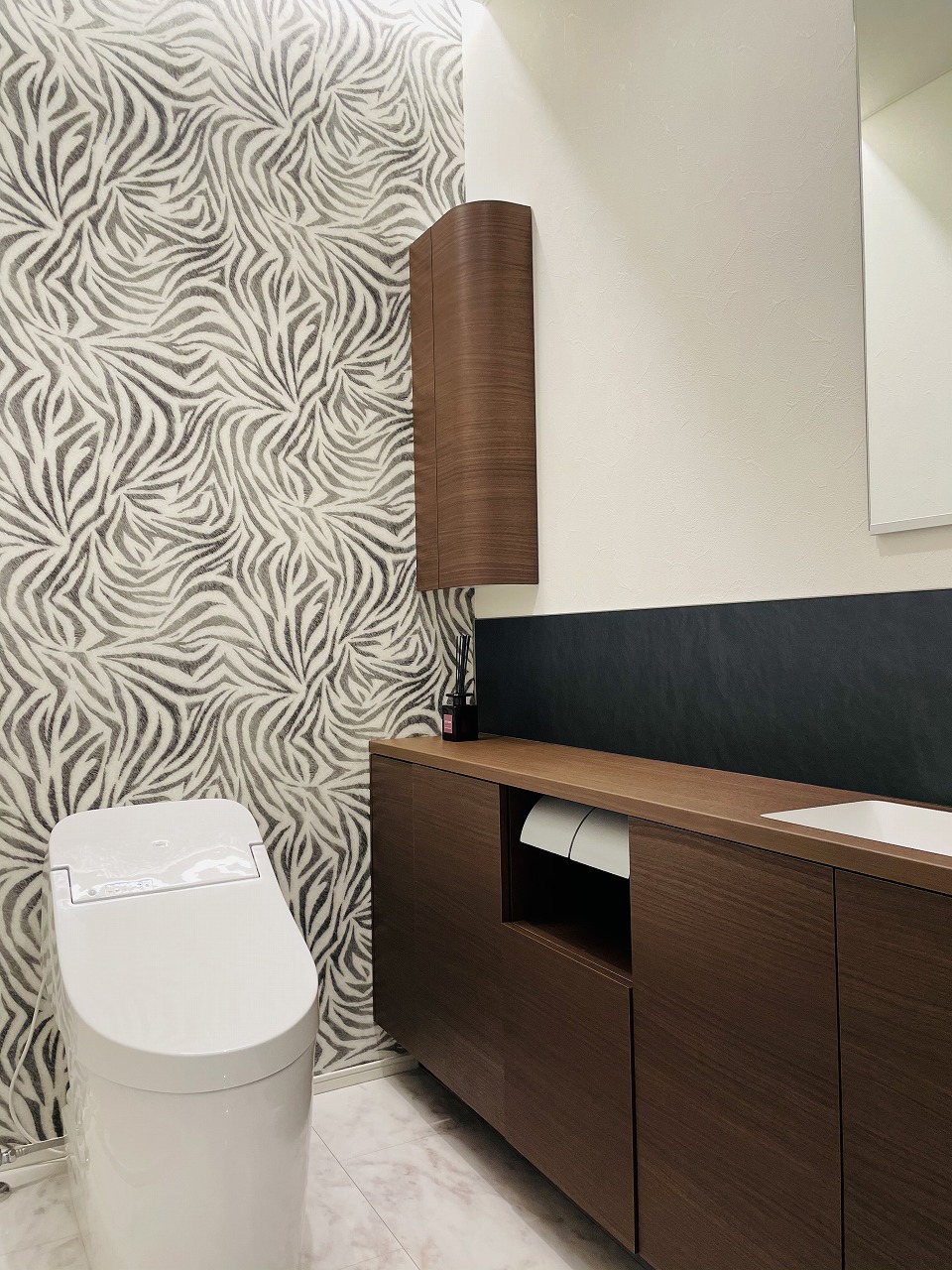 個性的なクロスを使った遊び心満載のトイレ