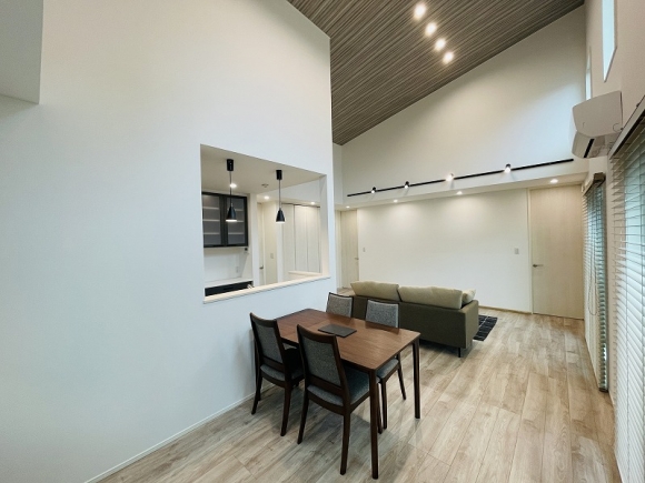 広々21帖のLDKに建具は天井までいっぱいの物を使用することでより空間が広く見えます。