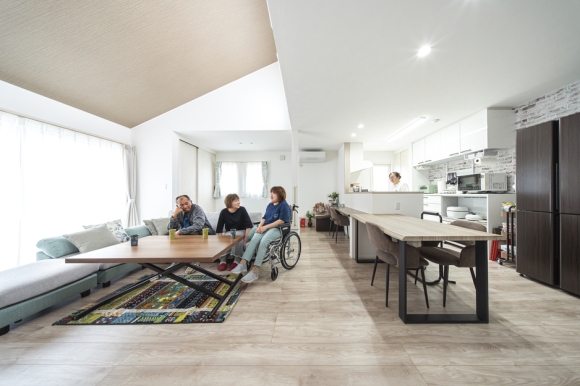 車椅子でも自立して暮らせるように、動きやすい動線や使いやすい設備を重視したバリアフリーの家