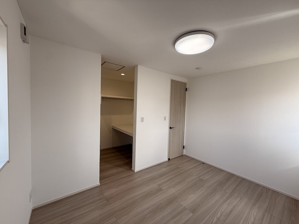 大容量WICを備えた洋室。木の温もりが広がる、心地よいプライベート空間。